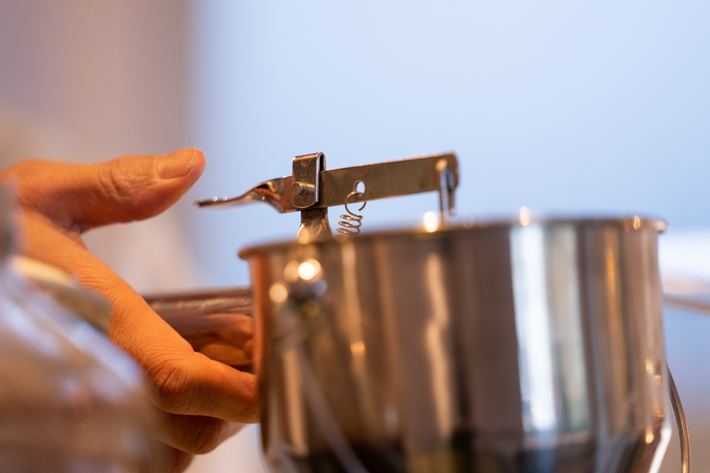 スパイスの粉砕機や道具は当時のものが修理されて使い続けられています。